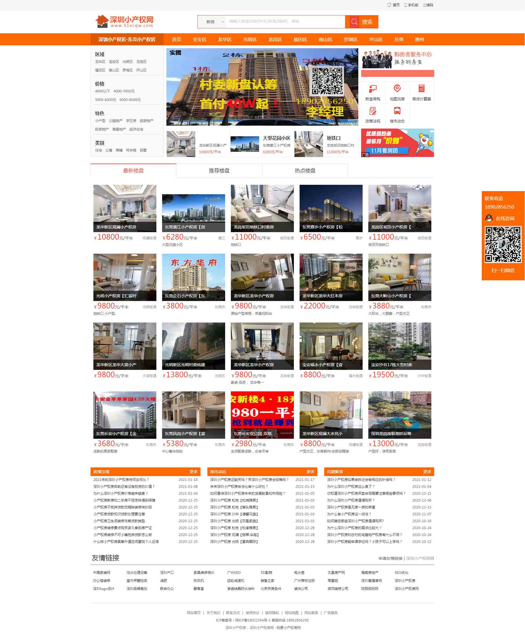 “www.51xcqw.com”介绍,本站点属于信息浏览型网站,主要提供深圳,东莞及惠州的小产权楼盘信息浏览查找与业务咨询。网站会定期更新一些房源信息,在本站可以浏览到深圳,东莞,惠州最新最全面的小产权房源信息以及有关政策讯息,且都是永久免费.
